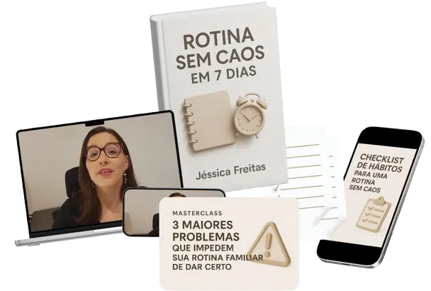 No Plano Rotina Sem Caos em 7 Dias, eu vou te ensinar passo a passo como organizar sua rotina de forma leve, prática e eficiente, para que você finalmente consiga colocar tempo para o que realmente importa: sua família e você.